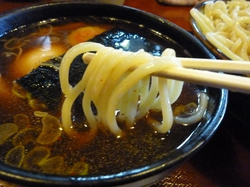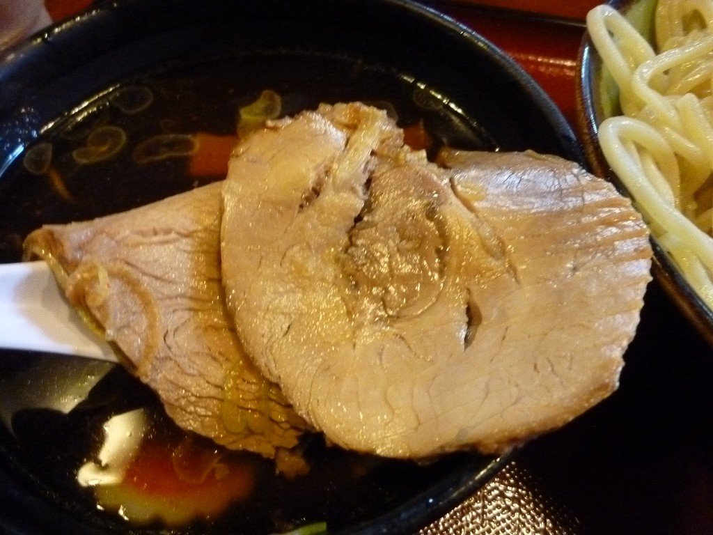 つけ汁は甘く酸っぱくタレの加減は若干弱め。麺とスープを一緒に食べてちょうど良いと思えました。