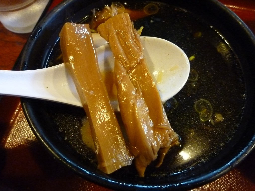 メンマはごん太でコリコリなのがあったり柔らかいのがあったりと食感イロイロ。それぞれに美味しいんですけどね。