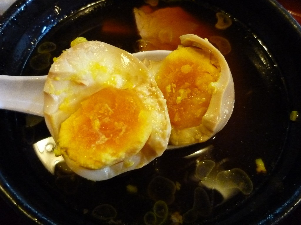割るのに失敗しましたが味玉は半熟というよりほぼ固ゆで。