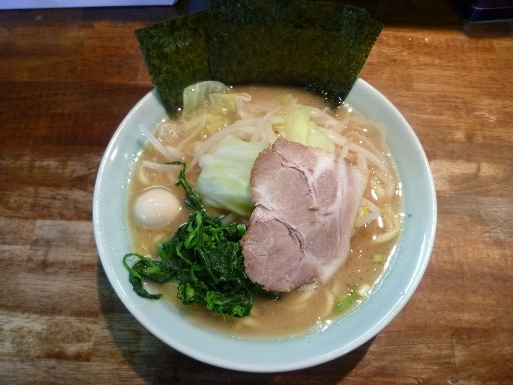 基本のラーメンに味玉と安さにつられてもやキャベなぞを。