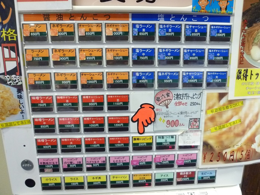 家系とんこつ醤油を筆頭に塩とんこつと味噌の3本立て。壱系特有の50円トッピングももちろん用意されてます。直営の壱六家は相模大野モアーズ店しか行ったことが無いんですが細かい部分でメニューに違いがあります。チャーハンを推してるのが特に印象的でした。