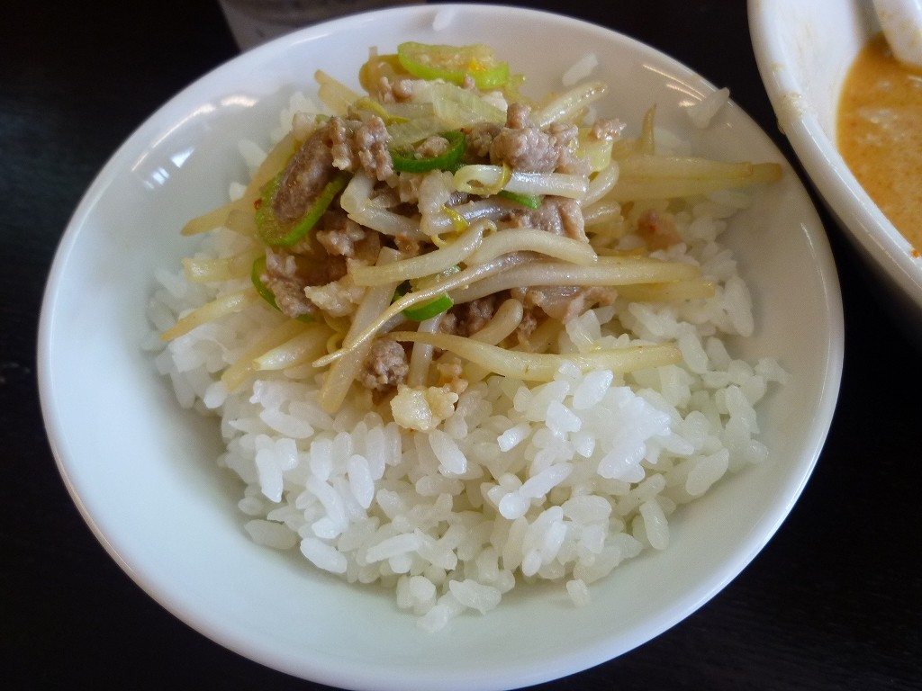 具にはもやしとそれに混ざった挽き肉。担担麺といえばの肉味噌がないのに肩透かしを喰った感は否めませんがそこそこなオニク感は味わえます。