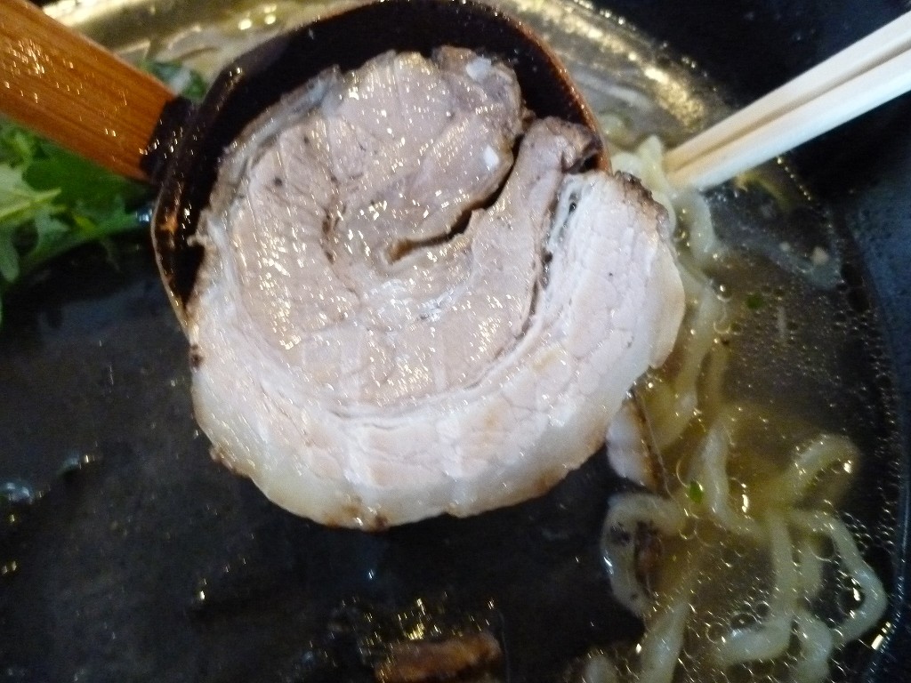 チャーシューは巻きバラが2枚。肉らしい歯応えがしっかりしてるんですが脂臭さが皆無で塩の味付けが濃いチャーシューです。