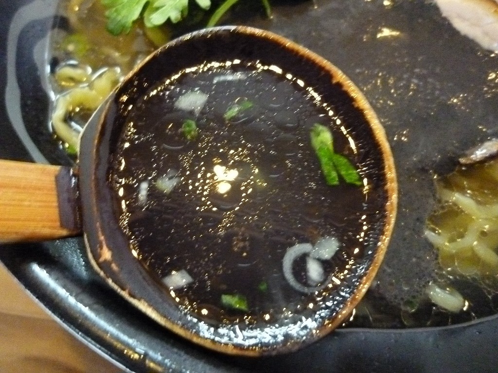 この1杯を担担麺ならしめる黒ゴマのペーストは見た目からは分かりませんがけっこうな辛さ。混ざってない状態での提供なんでまずはスープをそのまま、徐々に溶かしていくと味の変化が楽しめます。濃厚な黒ゴマの風味なんですがスープが負けないのは意外でした。
