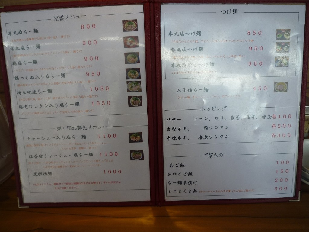 内装のリニューアルに伴ってかは判然としませんがメニューも若干変わってます。というか新メニューが追加されてます。味玉も塩味と醤油味の2種類より選べるようになってたり。ピンボケ写真なのがお店に申し訳ない。