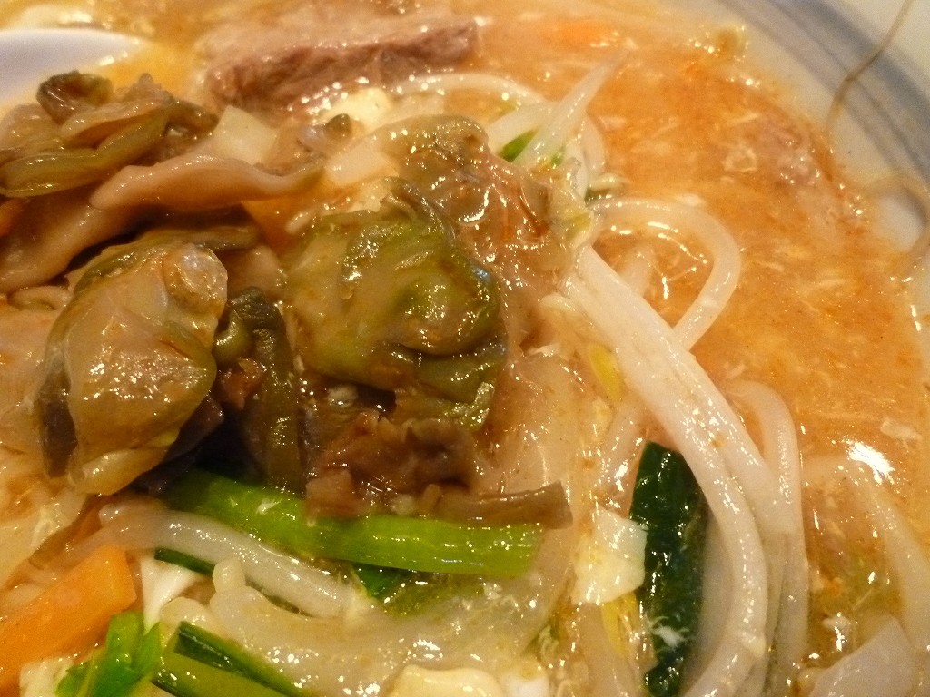 お野菜にはもやしに青菜ににんじんが少しと多めのザーサイ。野菜はややクッタリめですが一体感があり、ザーサイはコリコリした歯応えと淡めながらも独特の風味が食欲を増してくれました。☆は1点、★は0.5点として見てください。
