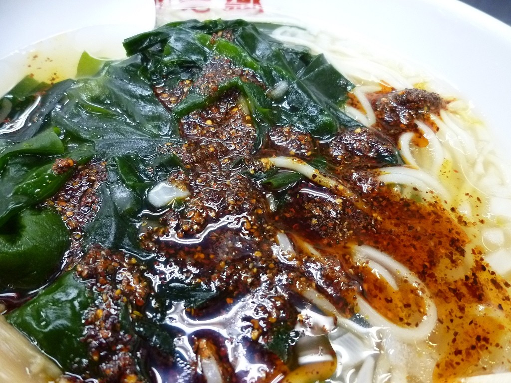 そのままを味わったあとにコクと辛みのラー油を投入。これだけ入れるとさすがに若干辛かったですがやっぱりラー油は必須です。
