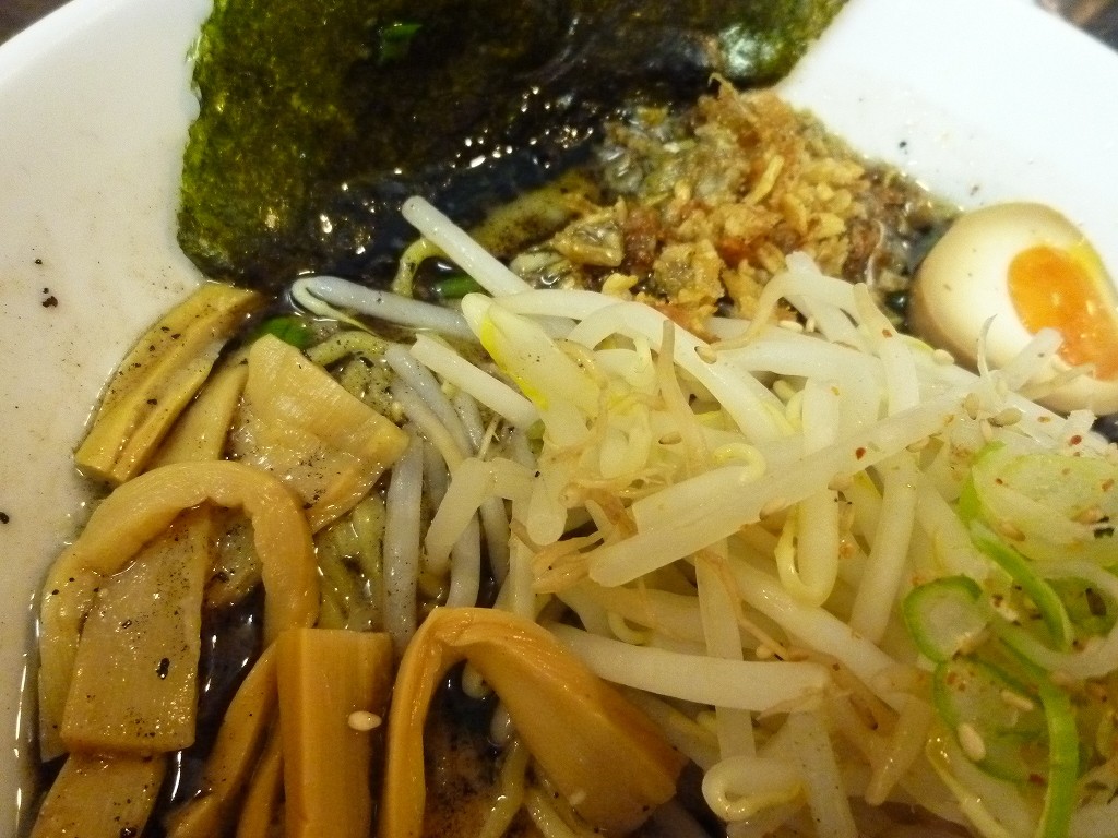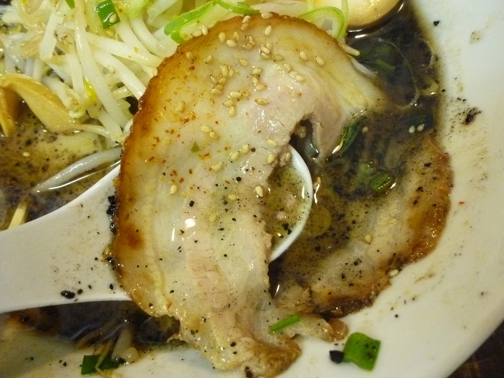 野菜系の具にはポキポキもやしにコリコリのメンマが多めに。どちらも凡庸ですが量の上では不満もないかと。フライドガーリックは更に香ばしさとにんにく風味を増しますね。