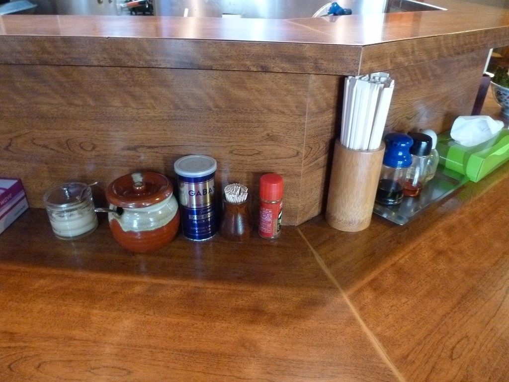 卓上は特に変わったものもなく。正油ラーメン¥650+味付タマゴ¥100
