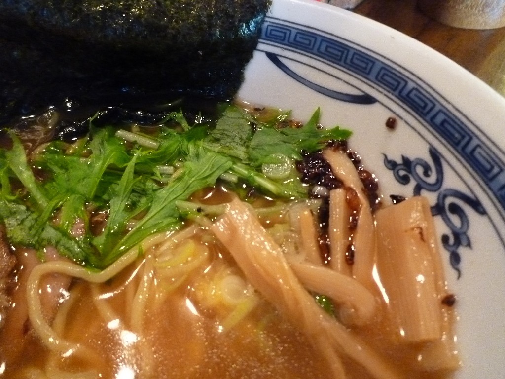 メンマは淡い味付けながらクセが無く柔らかな歯応え。水菜も清涼感を与えてくれます。