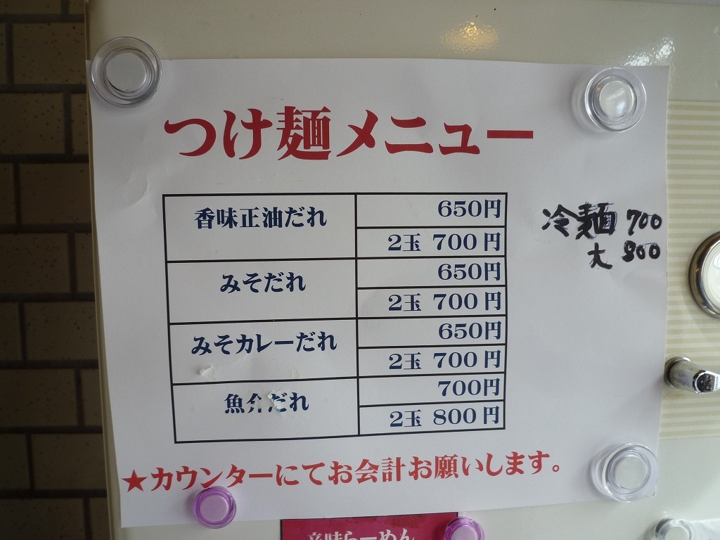 つけ麺は現金注文となります。みそカレーなんて面白そうですね。