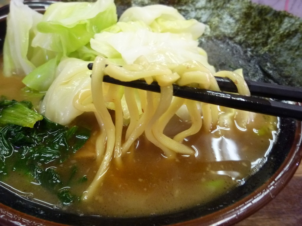 とんこつ・鶏のしっかりしたダシに醤油がキリッと利いてきます。普通の感覚だとしょっぱいとしか思えない加減なんでしょうが直系を食べ歩くと『こうじゃなきゃ』と思える不思議。