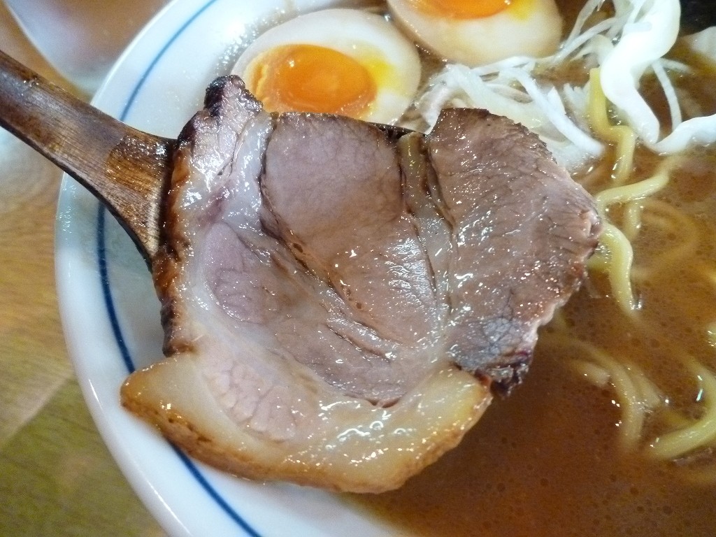 どっしりした動物系の土台にたまり醤油のような風味が負けずに絡んできます。とんこつ醤油は色々食べてきましたがこれは初めての味わいですね。なに、コレ?チョー旨いんですけど。