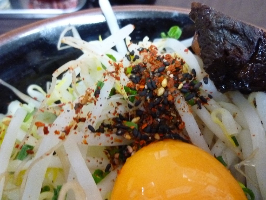 ノーマルと魚粉入りが同額なんで魚粉入りで。「にんにくとからしふりかけはどうしますか?」、と訊かれたんですが何だか分からないんで「からしふりかけ?」っと訊き返したら「からしふりかけですね?」、とか言われちゃったんで「ん、ああ、ハイ、それで」 ちょっと天然の店員さんかな。