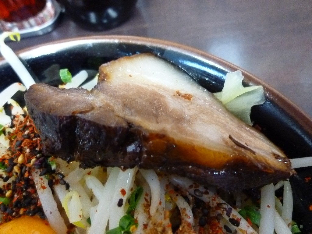 豚さんは大きめ厚切りの肩ロース。本店ぎ朗の豚さんとは明らかに異なるチャーシューです。脂身苦手人間なんで脂身部分はまるっと残しましたがオニク部分はサクっとした食感に濃い味付けで良かったです。本店のぎ朗のとは違うしっかりした豚さんですね
