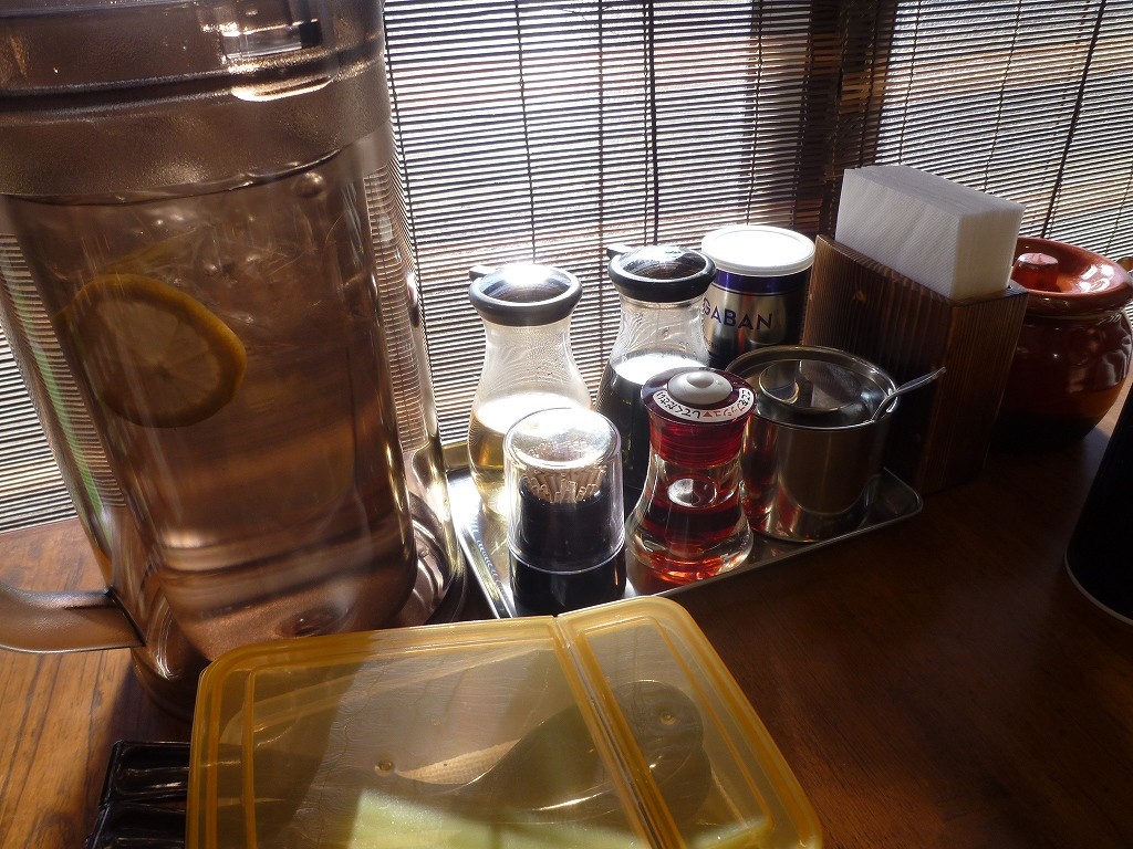 卓上調味料は正直よく見ませんでした。なんか変わったのあったんかな。お冷はレモン水ですね。