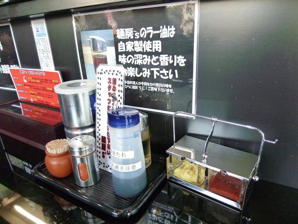 卓上には醤油ダレが常備。濃い方向になら調整できます。珍しいな、と思ったのが生姜が常に置かれててニンニクは申告制だってこと。逆のお店はけっこう見るんですけどね。