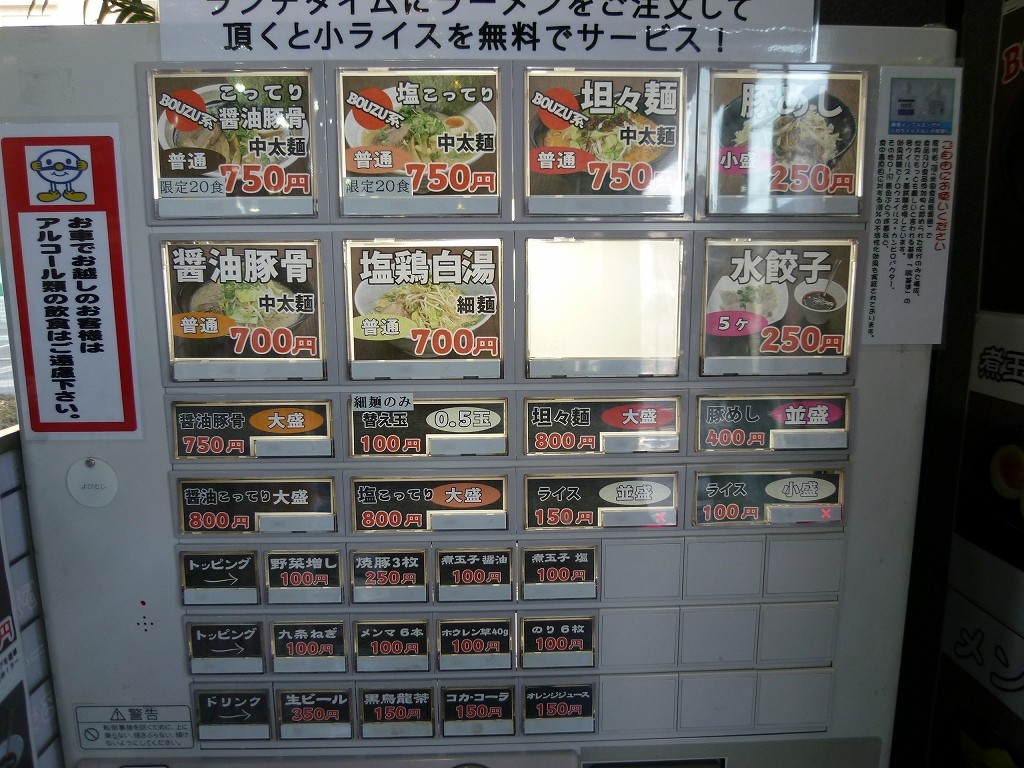 メニューはとんこつ醤油を筆頭に鶏白湯と坦々麺。豚骨のほうは数量限定のこってりと普通のとで差別化がされてますね。ちょっと基本が分かりにくいメニュー構成ではあります。ランチタイムには小ライスが無料のサービスが。