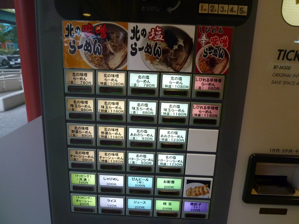 入って左手にある券売機。北の味噌らーめんがトップってことは札幌を意識してるのかな?
