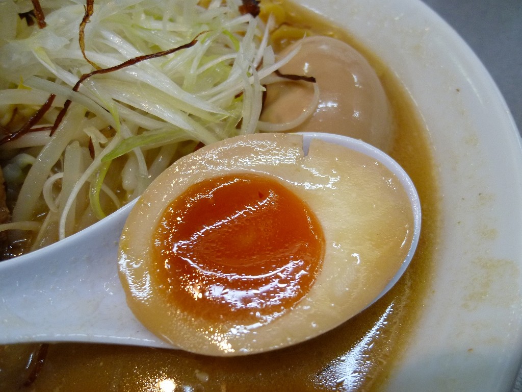 デフォ半分になった味玉。いやいや入るだけでも満足です。半熟加減は以前より良くなってるな。