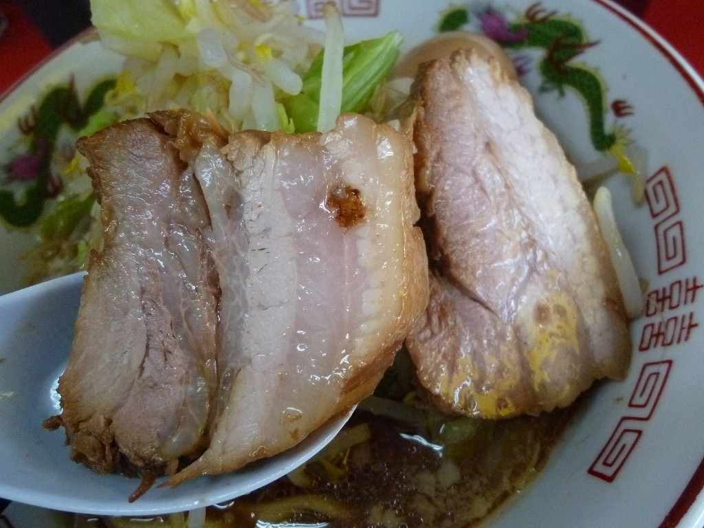 ぶたさんはバラの厚切りが2個。小ぶりですがしっかり厚切りで食べ応えはまずまず。
