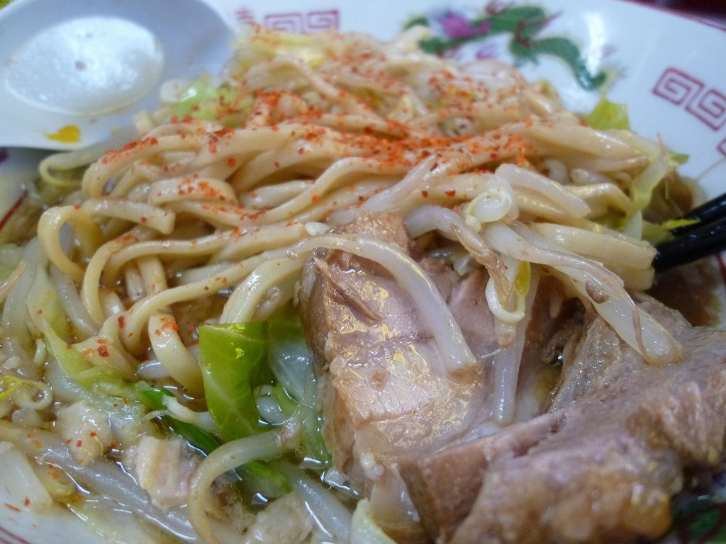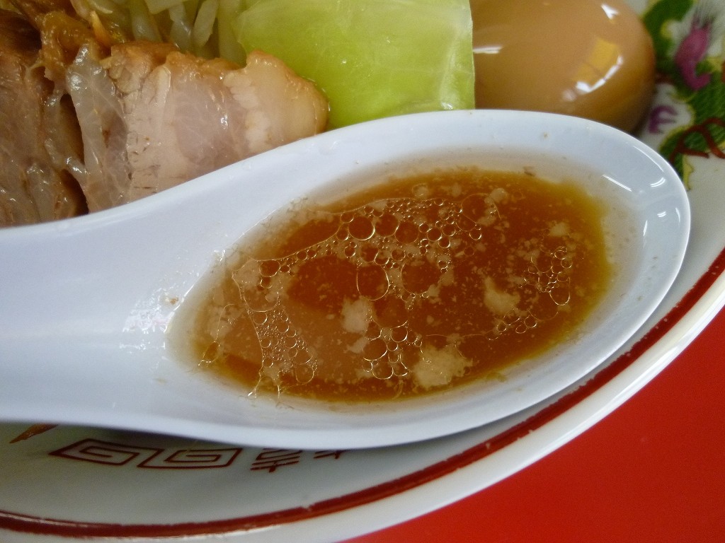 濃い色のスープで油たっぷり。醤油はしっかりしてますがこの手のスープとしてはおとなしめですか。