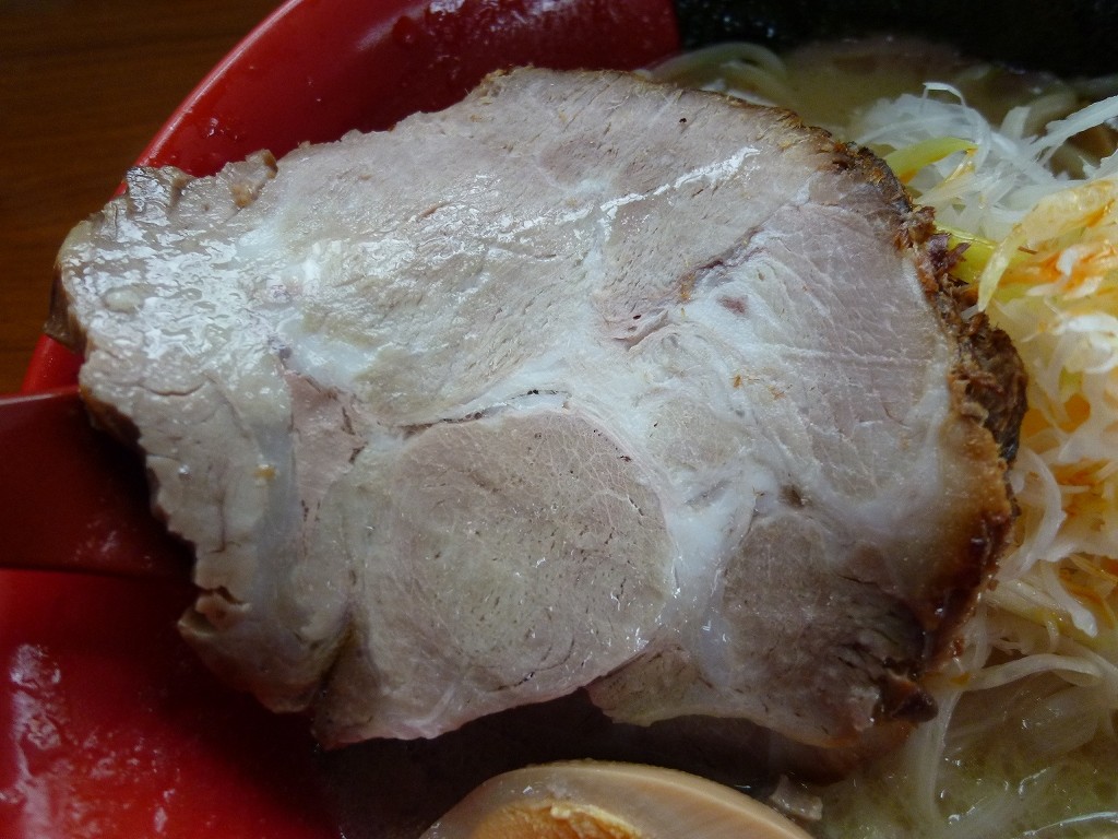 チャーシューは大判ロースのスライスが2枚。ちょいパサですがさくっと噛み切れる柔らかさに濃いめの味付けで量のほうも申し分ないです。