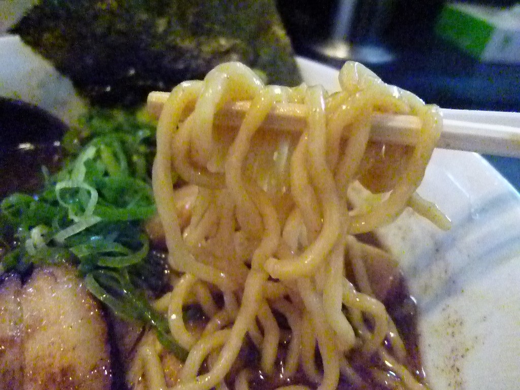 麺は低加水中細の縮れ。ちょい固めな茹で加減で素っ気ないくらいサクッと噛み切れる麺なんですがこれがスープに良く合ってます。