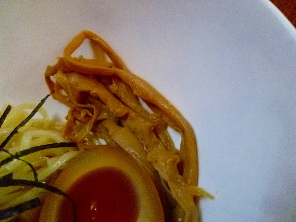 メンマはシャックシャクの穂先が多めに。ラーメンに入ってる時には分からなかったんですがほとんど味付けがされてないんですねぇ。よってメンマはつけ汁に入れちゃったほうが美味しいことが判明しました。