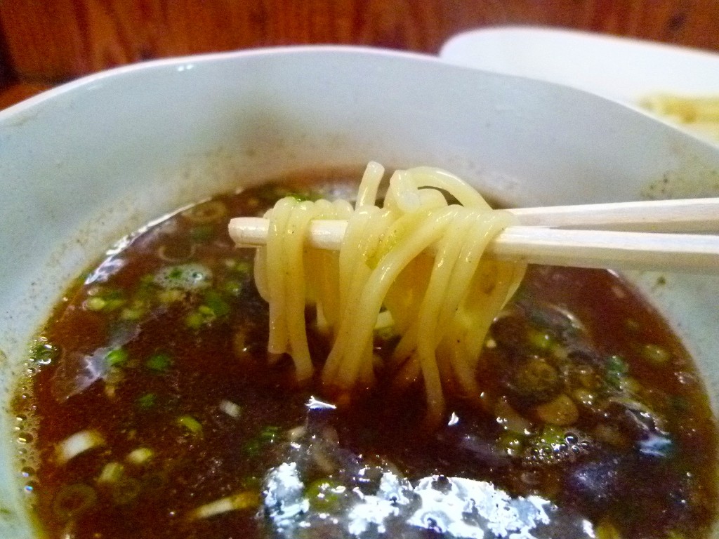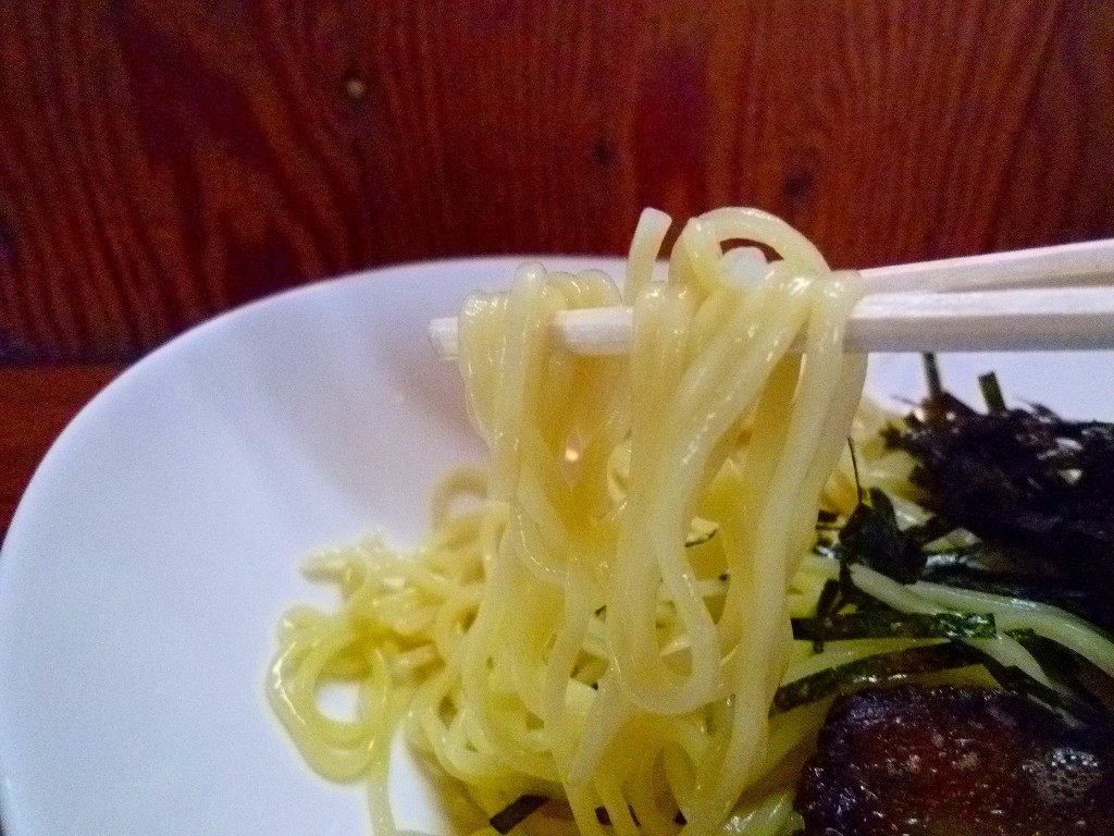 麺はつけ麺にしては細めの中細ストレート。細めではあるんですがしっかりとしたコシがあってキュッキュとした歯ごたえがあります。チャーシューがタレを絡めての提供なんですがそのタレが染みた麺がまた旨かったりして。