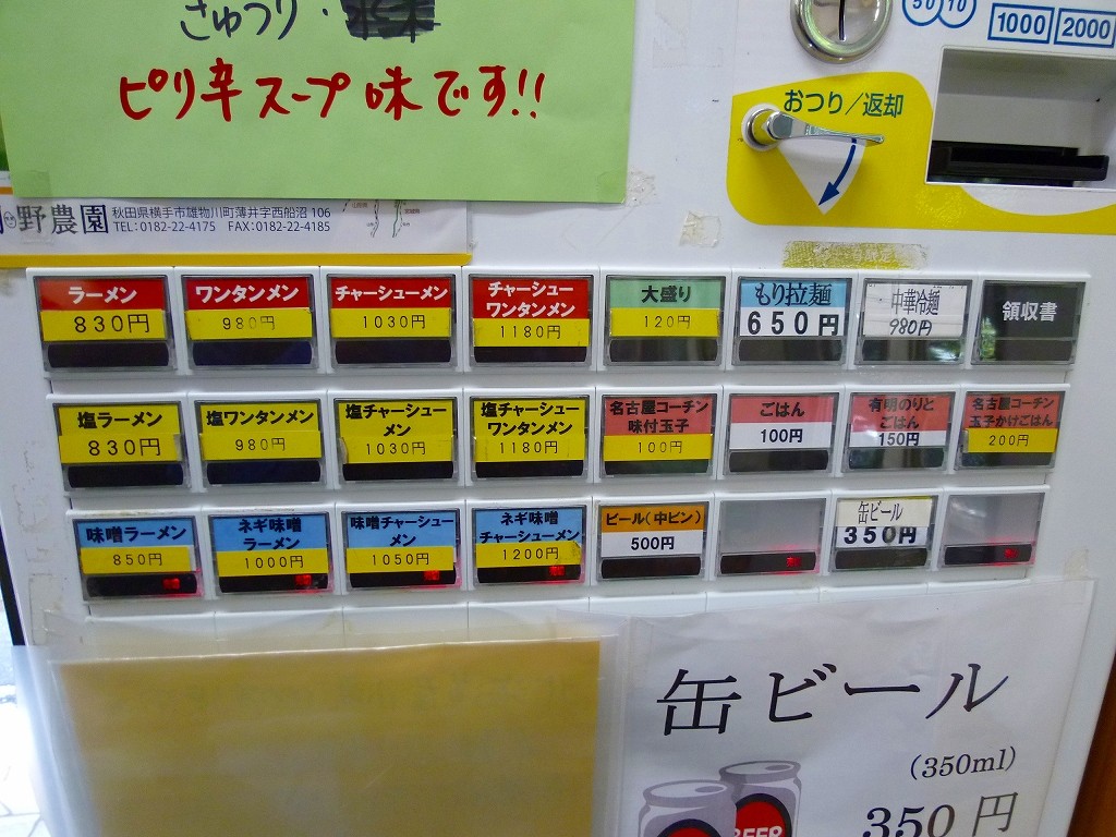 店に入って左手にある券売機。入口に背を向ける形で置かれてるんでスルーしちゃう人も多いみたいです。基本的には醤油ラーメンで私の訪問時には塩が提供されてました。曜日ごとの味噌は今も提供されてるのかな。