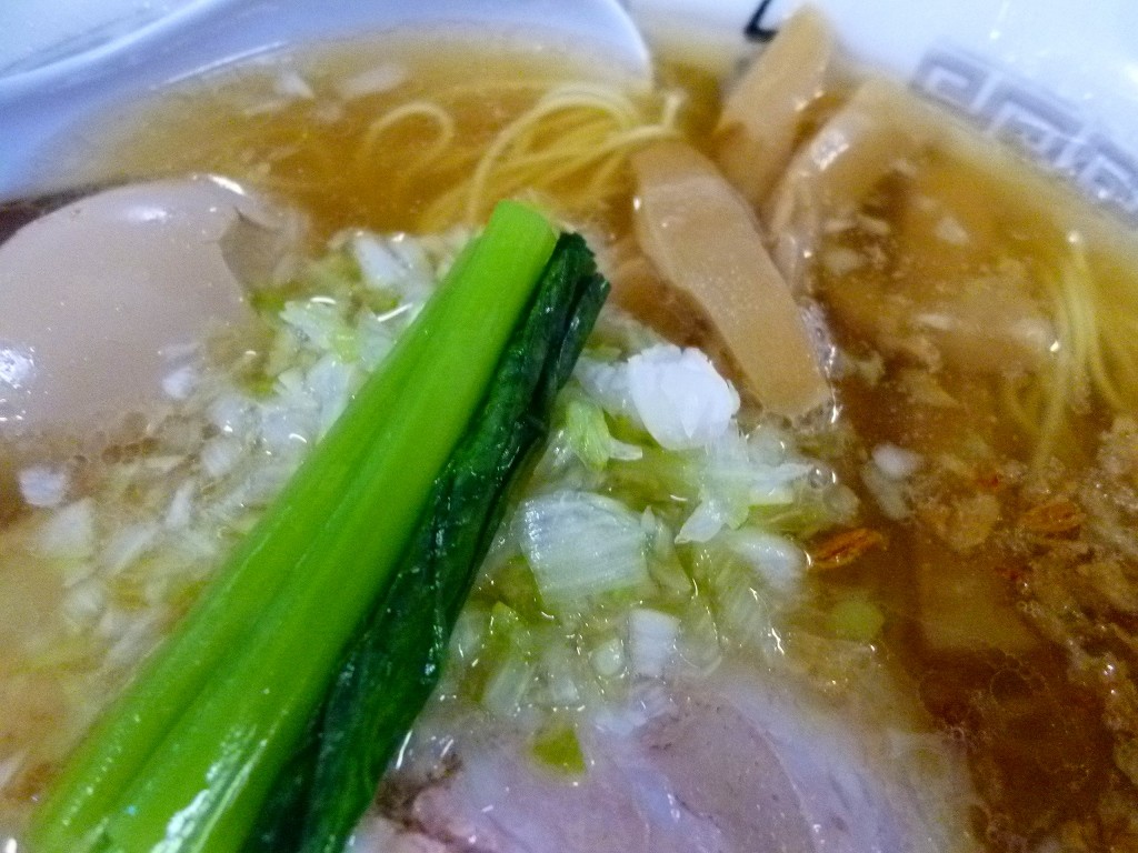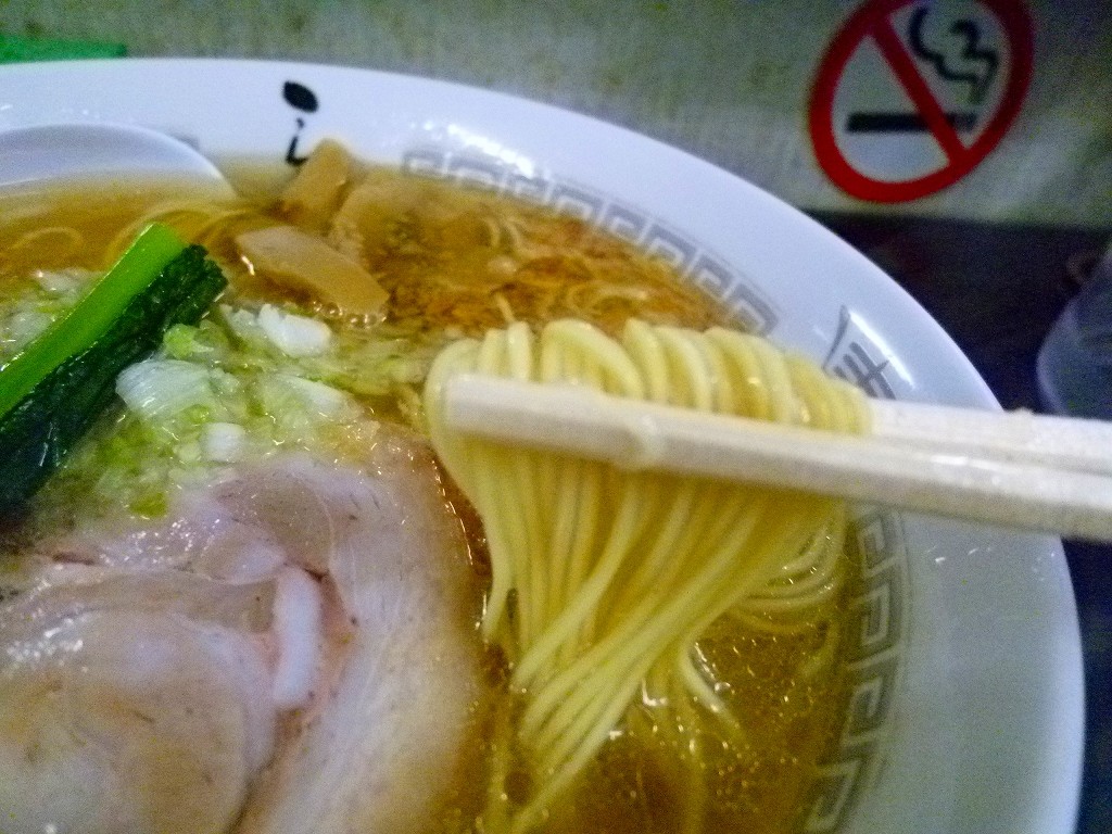 一見あっさりですが重層的なダシに多めの油でかなりしっかりした味のスープ。浮かぶネギや香ばしい揚げネギの入ってくる割り合いによってころころと風味が変わり飽きるということがありません。スープ自体も秀逸ですが薬味の使い方がスープの良さを昇華させてますね。