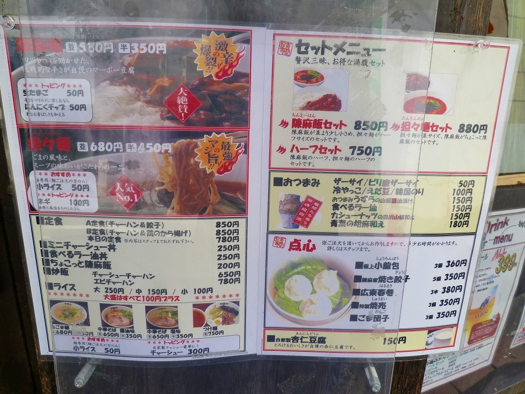 担々麺と麻婆丼をウリにする中華チェーン店です。陳麻家に行ってきました。