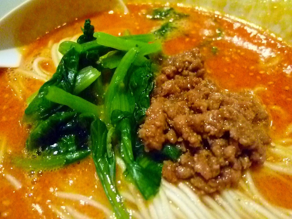 そぼろは甘辛な味付け。小松菜はパリパリで良いんですが中華系坦坦麺なら青梗菜が欲しかったかな。