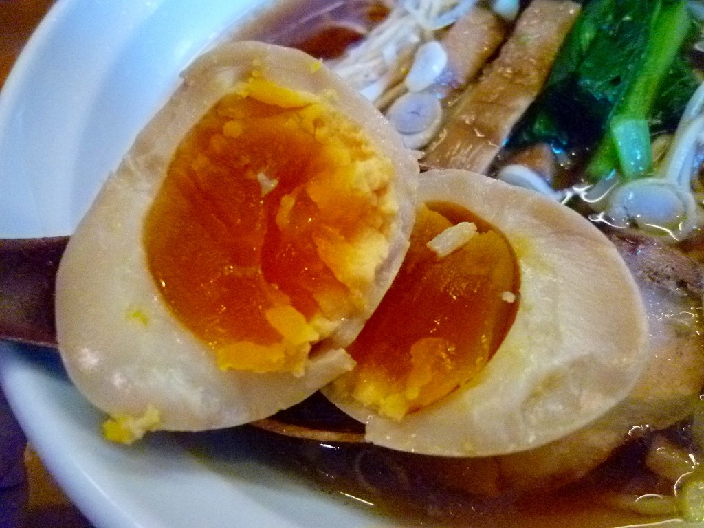 味玉はちょっと固めで甘めなダシ味が黄身までしっかり。温めてあるのは丁寧です。