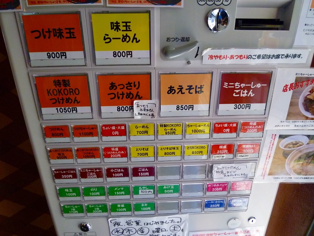 平日のお昼過ぎの訪問で先待ち2名。日向を避けて少し離れたところでお待ちになってたんで「こちら(KOKORO)でお待ちですか?」と声をかけたところ「そうです」とのこと。「先に食券を買ったほうがいいですよ」と教えていただいたんで「ありがとうございます」と店内へ。