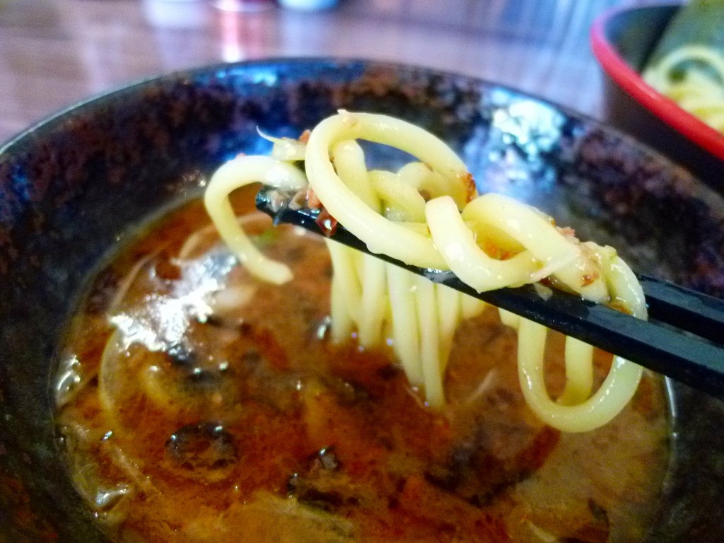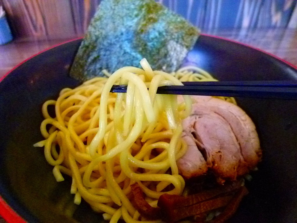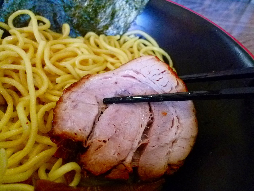 チャーシューは脂身の少ない巻きバラ。しっとりと美味しいです。つけ汁の中にも塊りが入ってたのは嬉しかった。オニク的な満足感は相当です。