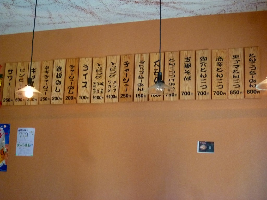 ちょいボケですがメニュー画像。支那そばが増えてますね。指定しなければとんこつ醤油になるんですが塩に変更することができるようになってます。麺も基本中細ですが太麺に変えることも可能です。
