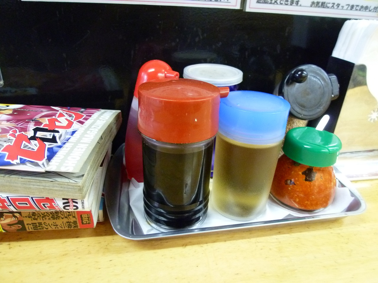 卓上のには調味料の他に漫画も常備。ゼロセンを読みながら出てくるのを待ちました。