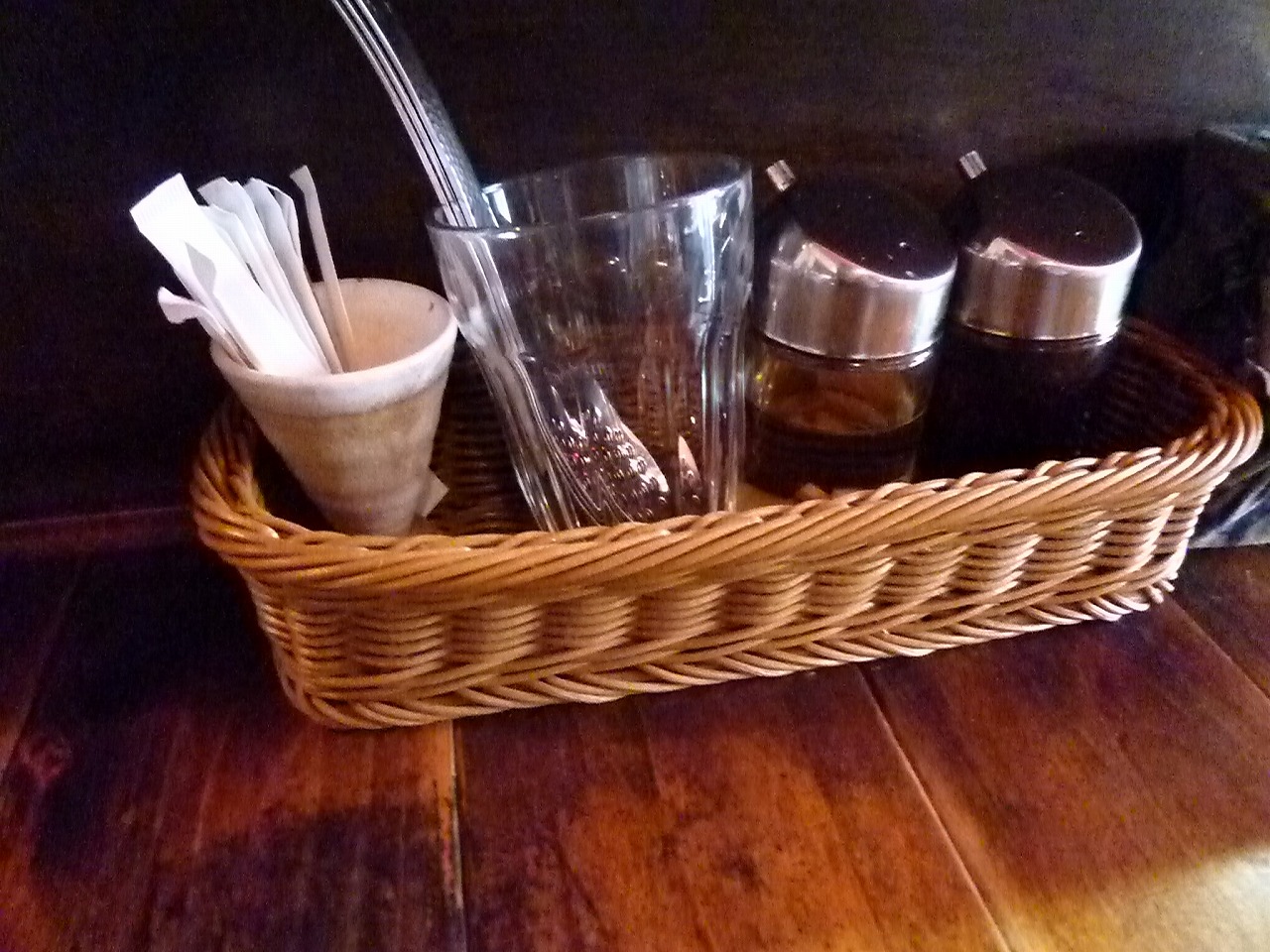 卓上にはレモン?入りのお酢に醤油と担々麺には嬉しいよねって穴あきレンゲが置いてあります。お願いすれば紙エプロンも出してくれるのは女性に対する配慮でしょうかね。旨いから1度も調味料のお世話になったことが無いんですけどね。今度味見してみようかな(笑
