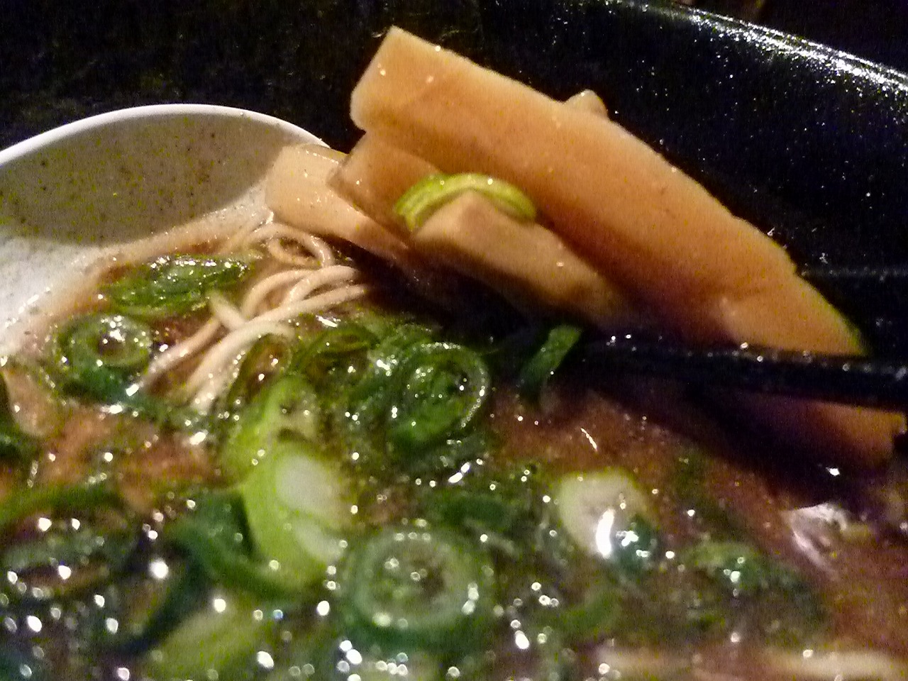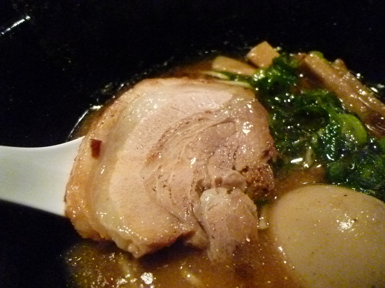 チャーシューは巻きバラが1枚。脂身は少ないですがとろっとろで歯がいらないレベルの柔らかさ。う〜ん、得のせにしときゃよかったって、前回も同じこと言ってるね(笑