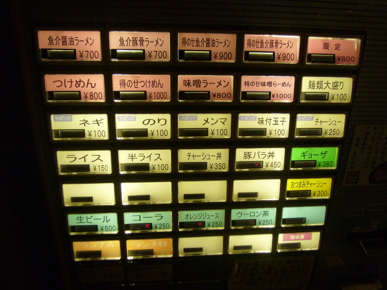 店員さんの案内に従い券売機へ。基本メニューは2年前と変わらないようですが昼の部限定期間限定として焦がし醤油ラーメンなるメニューが提供されてました。