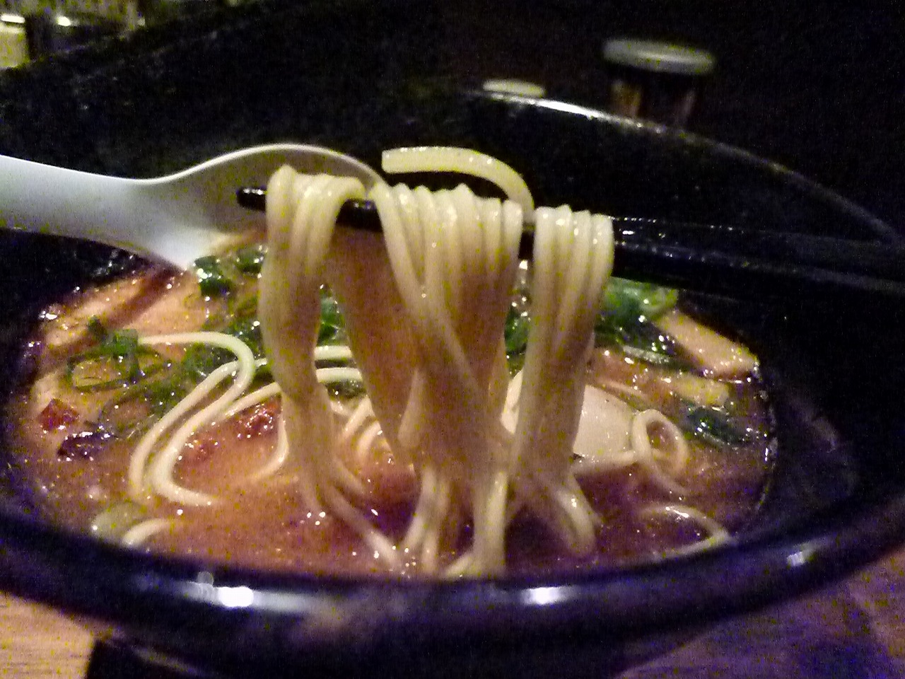 麺は低加水細ストレート。固めな茹であがりでしっかりとしたコシがあります。
