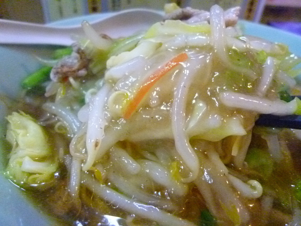 何がベースかよく分からないスープですがインスタント感はないもののとにかく薄味。中華屋さんにありがちな味ですがラードかなって脂がほんの少し厚みを演出してるように思えました。