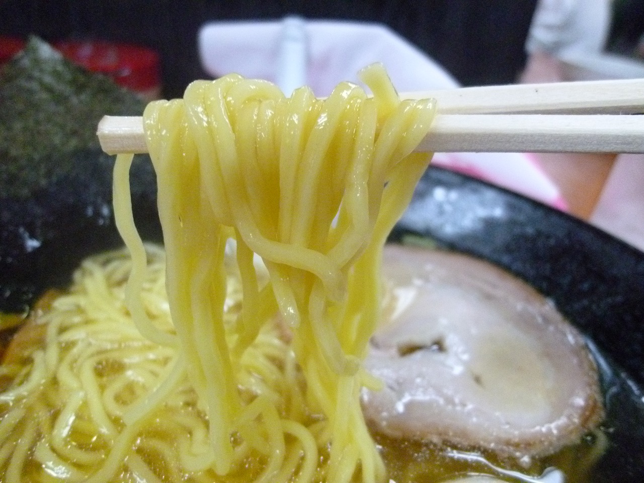 家系のお店とは思えない透明度の高いスープは鶏中心のあっさりで初めはちょっと物足りないくらいなんですが食べ終わりの頃にちょうど良く感じることが出来ました。これは計算されてるのかな。