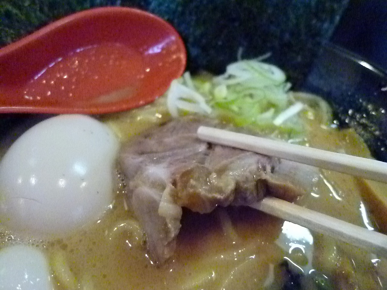 チャーシューは小ぶりながらしっかりした厚みがあって柔らかくしっかり味で満足感はそこそこにありました。もう100円出して特にしとけばまた違った印象になったのかな。