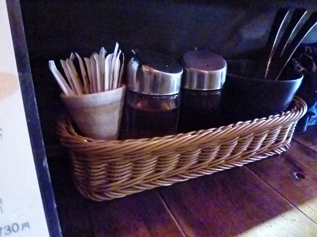 卓上には醤油にレモン入りのお酢。穴あきレンゲも用意してあって担々麺の終盤に活躍します。