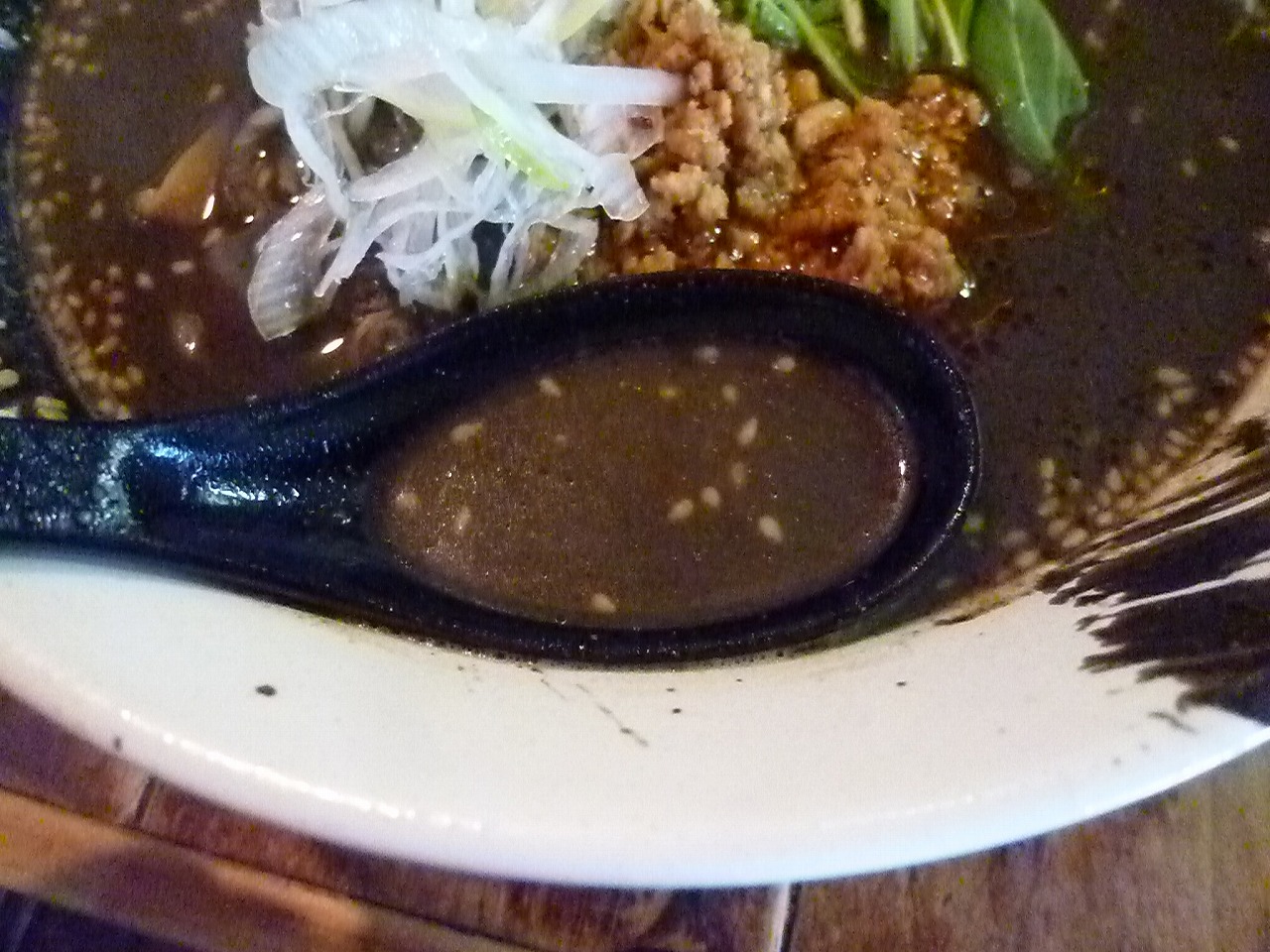 名前通りに真っ黒な見た目にさぞ強い黒ゴマをイメージしたんですがあっさりベースに複雑なスパイスの香りが強く黒ゴマはむしろ控えめ。たとえが違うかもしれないけどどことなく本格インドカレーに通じるような気がしました。なるほど、エスニックってこういう意味だったのね。