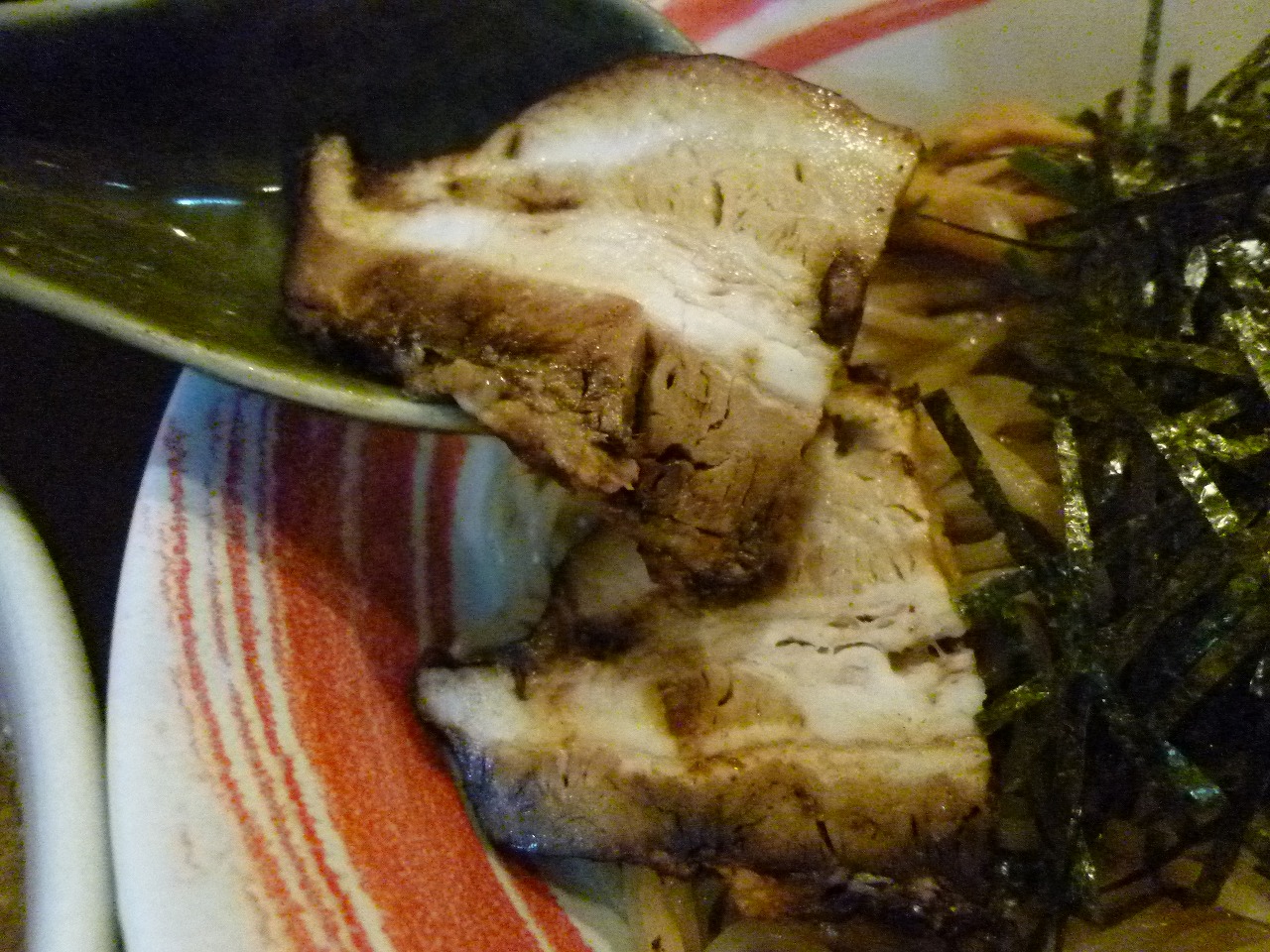 チャーシューは多めの脂身のバラが2枚。