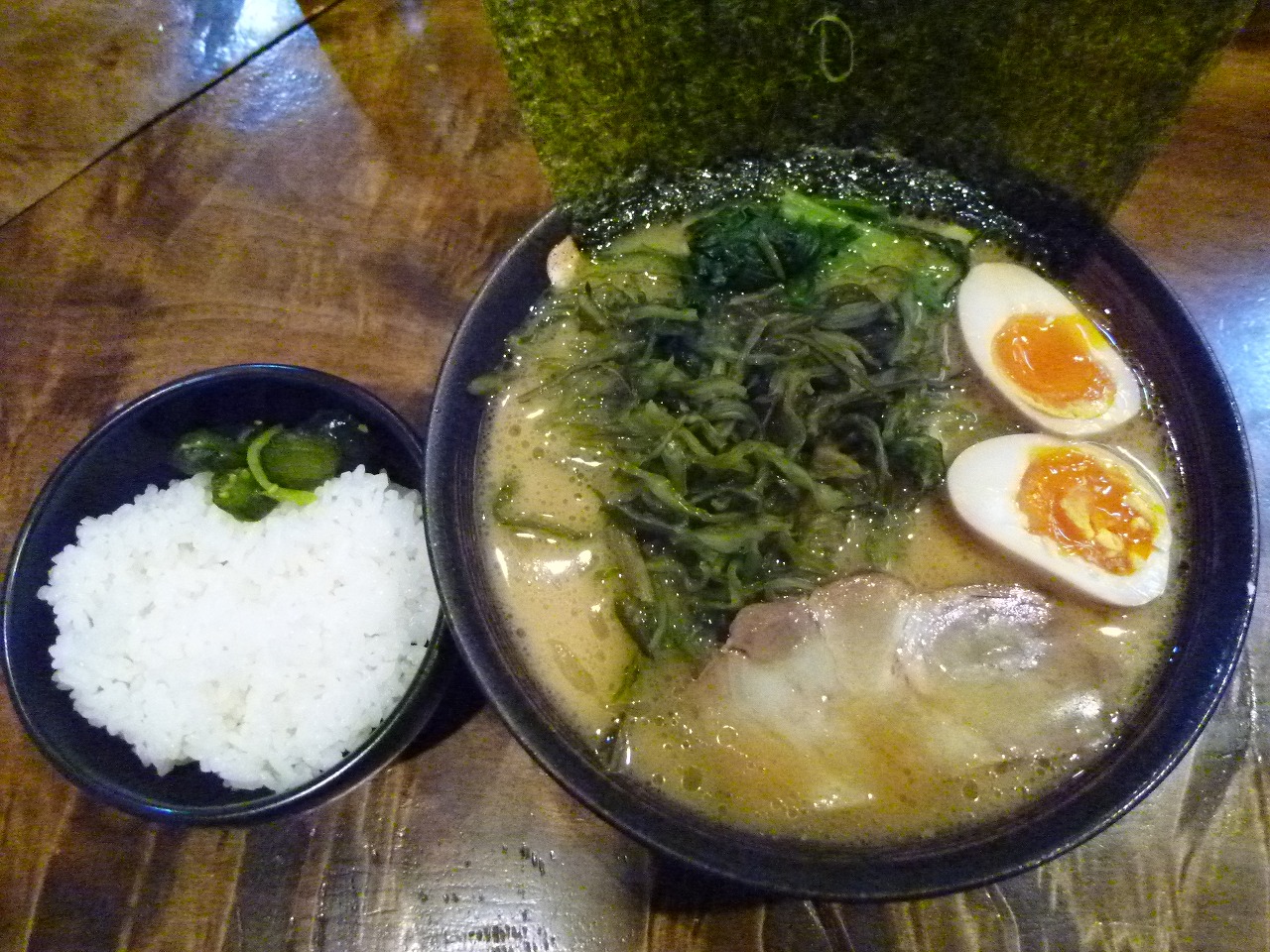 茎わかめラーメン・油少なめ¥750+味付玉子¥100+サービスライス¥0